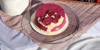 For a moment of pure indulgence, savor the taste of a small, impeccably crafted cake, a delectable centerpiece that elevates the culinary experience.